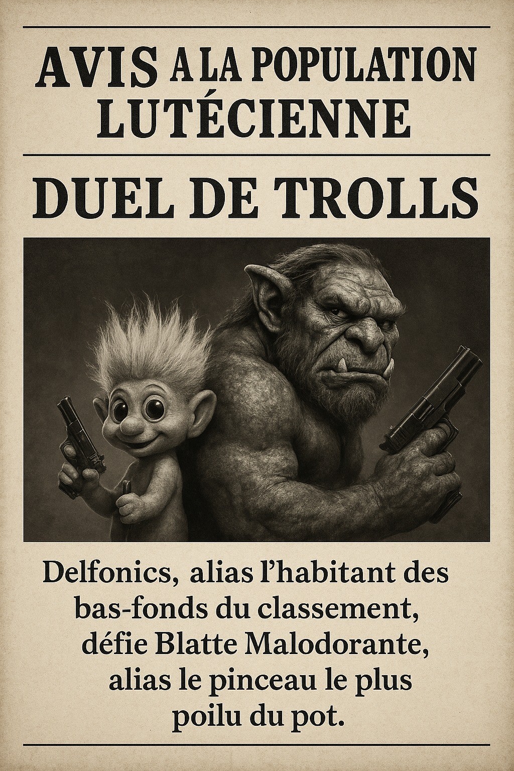Pour la date, idéalement avant la J5 pour moi, ma J3 déjà jouée et les vacances scolaires me donnant pas mal de dispos, mais sinon n’importe quand cette saison. J’ajoute qu’un multiplex serait parfait : la présence de Lutéciens pour assister à la victoire triomphante d’un troll et à la défaite humiliante de l’autre rendant ce match plus savoureux 🙂