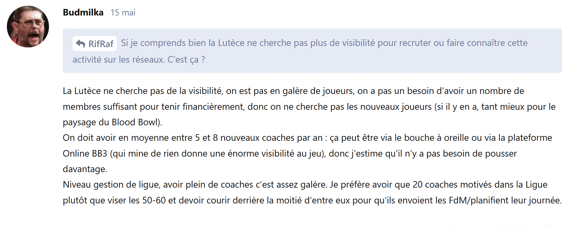 - d’autre part, et pour éviter tout risque, toute publication d’une photo devrait a priori obtenir l’accord du bureau de l’association (ou de la part des modérateurs si le bureau leur en a délégué le pouvoir).